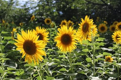 ひまわりがかなり開花しているのを