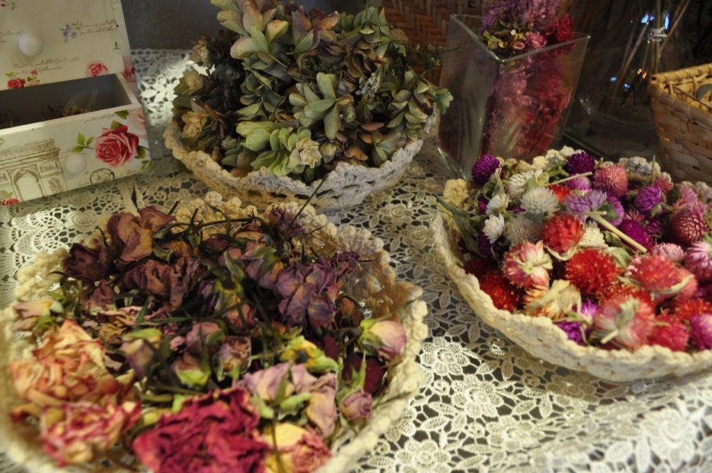 ドライにしたお花をガラスのボトルに入れていくのですが、ドライフラワーには種類がたくさんあり、