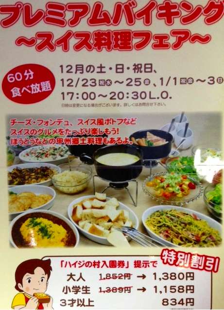 スイス料理と山梨の郷土料理のバイキングをしています。