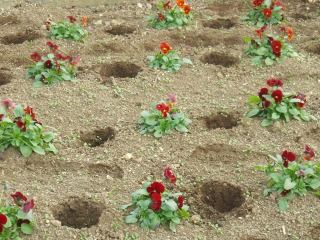 球根を植えるために穴をあける作業!
