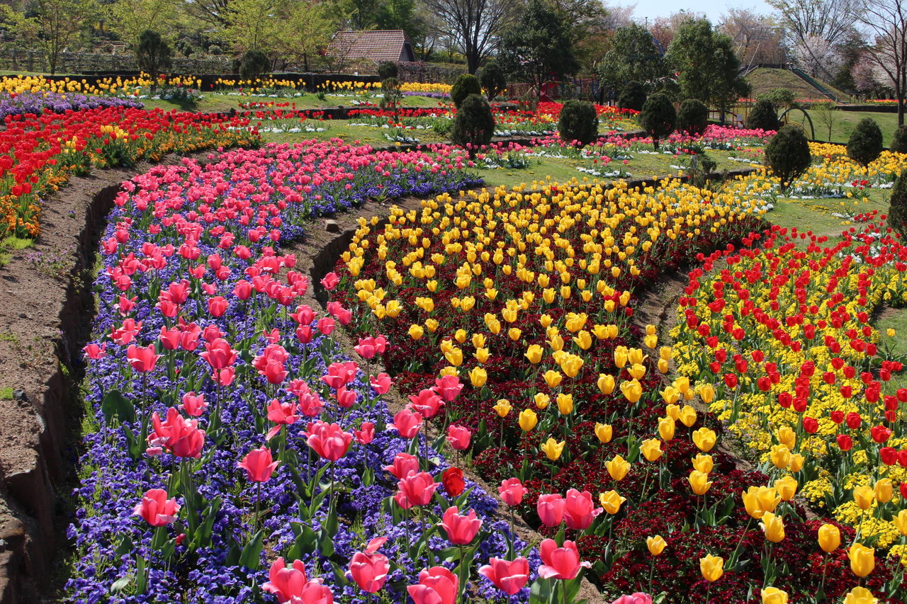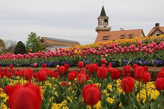 チューリップが咲く、パノラマ花壇は