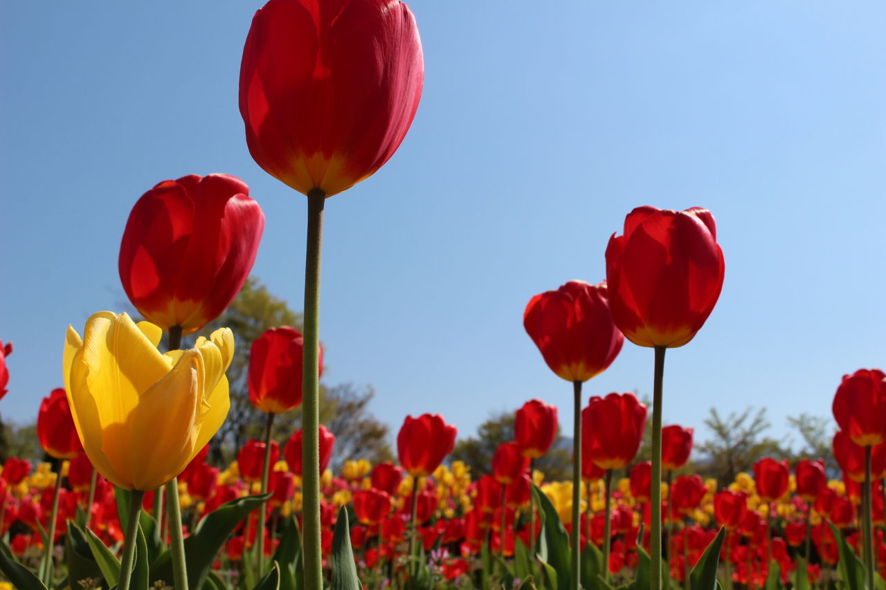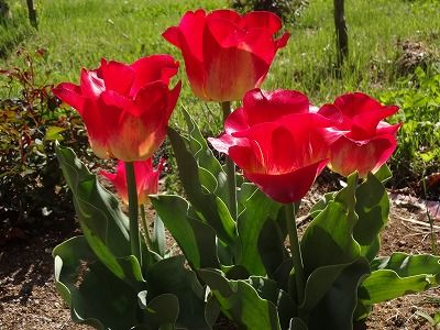 チューリップが力強く咲いていて