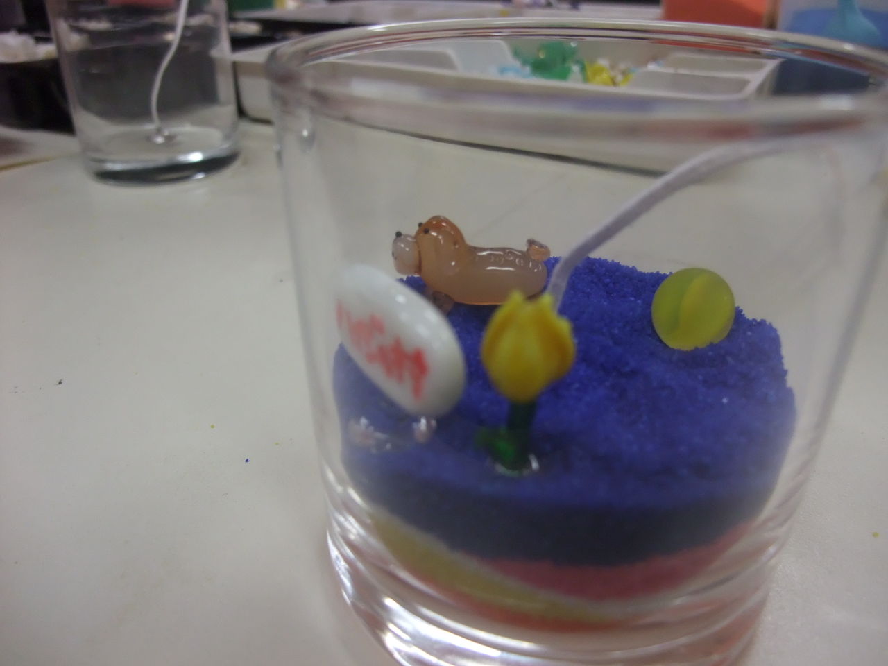 ガラス細工やビー玉をのせて、