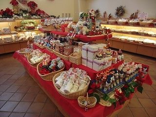 店内のクリスマスグッズのコーナーにはクッキーなどのお菓子や置き物が沢山。
