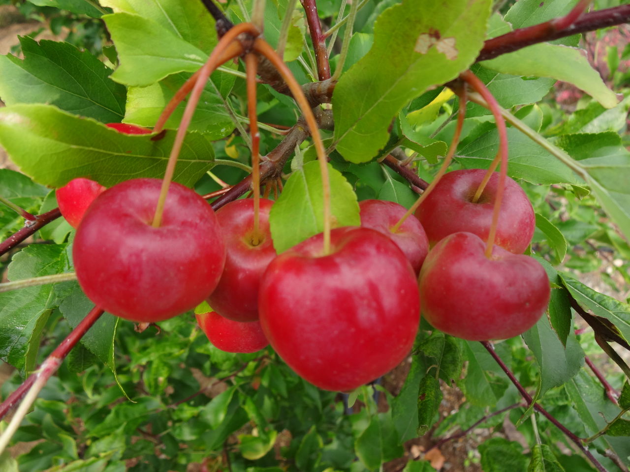 ボルケーノテラス前の庭に姫りんごがたくさん実をつけました。