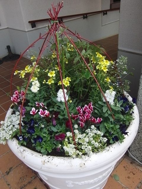 シクラメン、ビオラなど冬にピッタリなお花を植えてます。そーっとカメラを向けると…気づかれた!!
