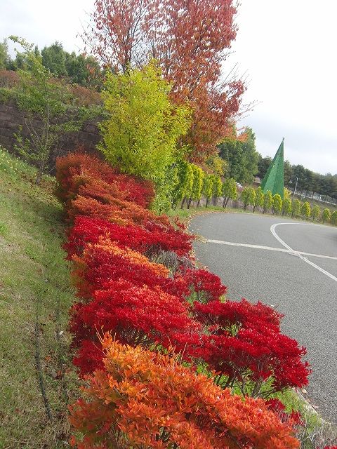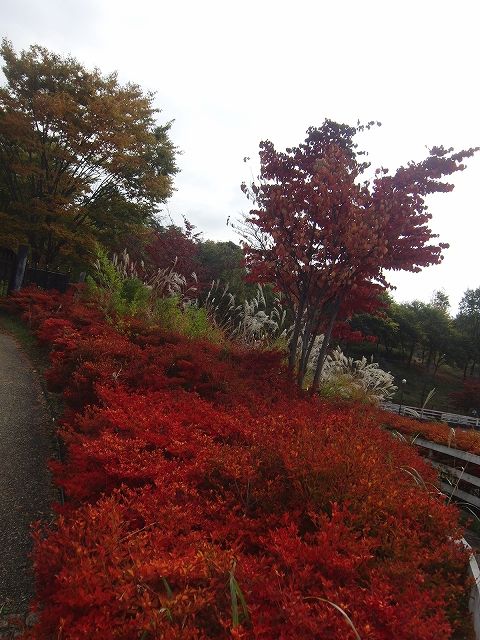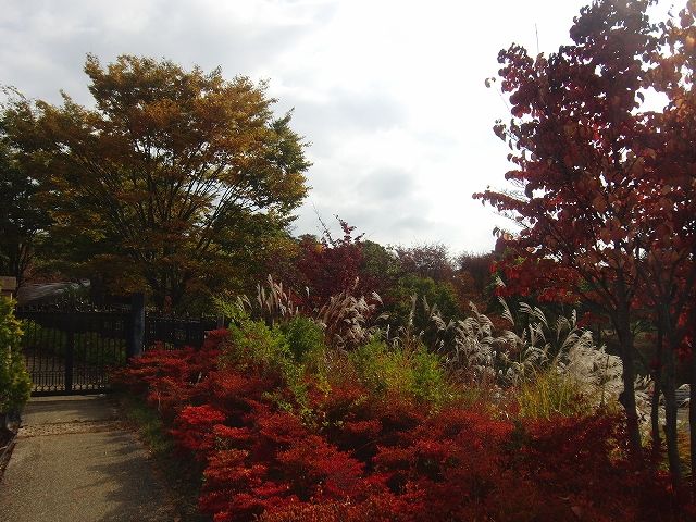 ハイジの村、門から駐車場まで続くドウダンツツジのレッドカーペット!私随分前から赤くなるのを待っていたんです。それがここ最近の冷え込みで見事に紅葉しました!!