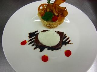 ワインビーフフィレ肉のステーキはわさび風味のクリームが乗っていて、ツンと