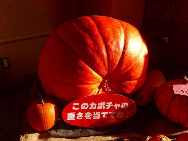 このかぼちゃの重さ当てクイズも行っています。