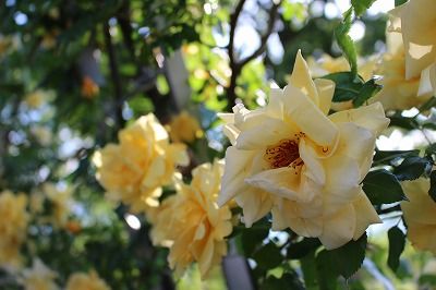 ハイジの隠れ家付近では綺麗なモッコウバラが咲いています。