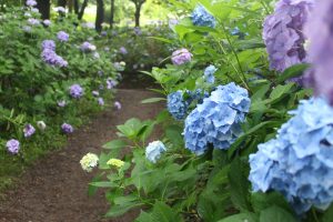 ハイジの村園内を歩いていると、まず、紫陽花の鮮やかな紫色が目に飛び込んできます。
