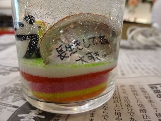 メッセージ入りのジェルキャンドル。