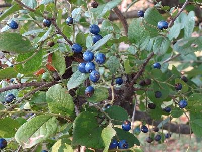 ちょっと不思議なブルーベリーのような、青い南天のような実も。