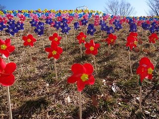 2013年12月10日 くるくる 公開済み: 2013年12月10日更新: 2013年12月10日作成者: ハイジの村カテゴリー: blog 今日の朝は雨でしたが、 そんな天気忘れさせるくらいの晴天に。 風も程よく吹いていたので 風車を見に行きました。 たくさんの色鮮やかな花の風車がくるくると回っていてとても綺麗。 この風車たちは山梨県の保育園や幼稚園の子たちに作ってもらいました。 上手にできてますね。 よーく風車を見てみると、 園児の子供たちが名前を書いていたり、 シールを貼っていたりして遊び心がたくさんあります。 私も一本作って友達の赤ちゃんあやすのにも使おうかな。 ひぐ