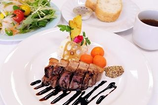地元山梨県産のお肉を使った料理。