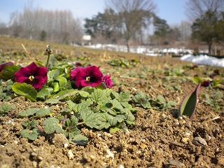 つい先日まで雪に埋もれていたビオラたちも、