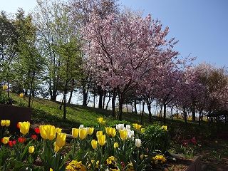 なんと花壇に近くにはまだまだ見頃の桜が。