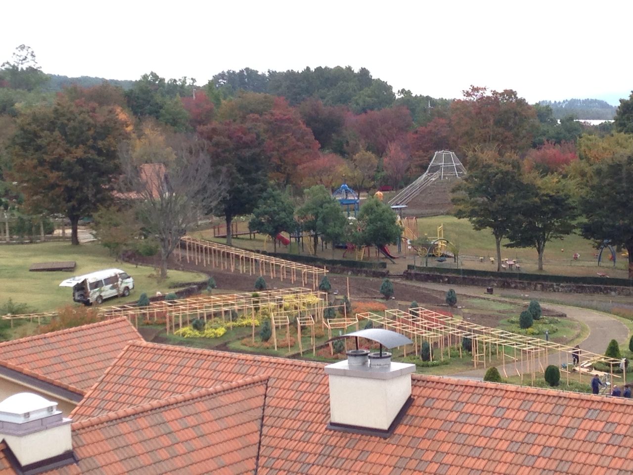 メインのパノラマ花壇は何やら制作中。