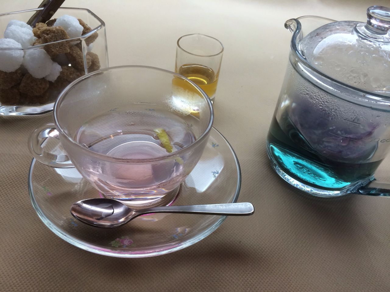 2015年03月13日 マロー 公開済み: 2015年3月13日更新: 2015年3月13日作成者: ハイジの村カテゴリー: blog 昨日、レストランボルケーノに お食事に来て下さったお客様が ハーブティーのマローを頼まれ お客様に持って行くと 「色が綺麗。」とのお言葉。 ハーブティーは マロー・スタイリッシュ・カモミール・ローズミックス・レモニーキッスの 5種類あるのですが マローは他のハーブティーより色が濃く、 とても綺麗な青い色をしています。 レモンを入れるとピンクに変化するのが特徴で 色が変わるという説明をすると驚きます。 変化に楽しんで頂けると 私はとても嬉しいです。 めぐ