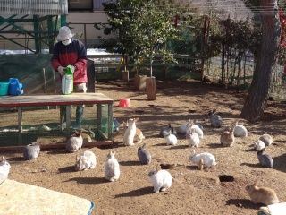 園内のウサギ小屋ではたくさんのウサギたちがうつらうつらと気持ち良さそうに日向ぼっこをしていました。