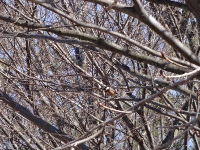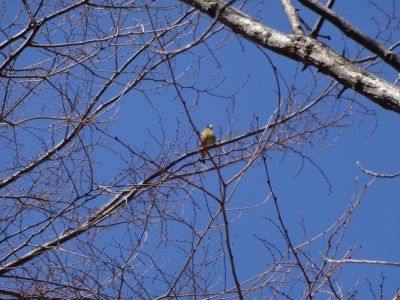 この時期はチューリップの芽も日に日に大きくなるので、つい地面に目がいってしまいますがたまには上も見て下さい。まだ広葉樹は葉をつけていないので野鳥が見つけやすいですよ。