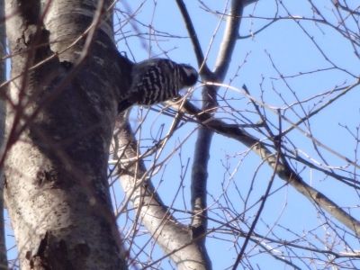 キツツキの仲間です。木の幹をココココッと突く音がしたので見つけることができました。