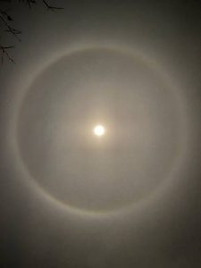 月の光が氷の粒を通り抜ける際に屈折して、月の周りに円として見えるそうです。