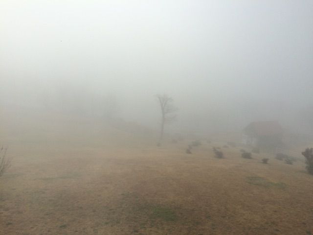 今朝のクララ館は朝霧に包まれました。写真は男湯からの眺めです。