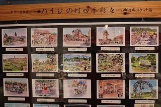 ハイジのテーマ館では、園内をスケッチした絵はがきや、ハイジの村の