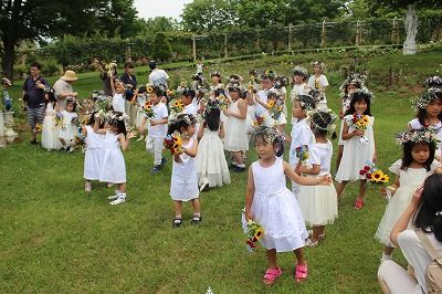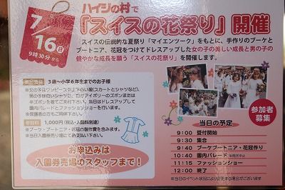 本日、ハイジの村ではスイスの伝統的な夏祭り「マイエンツーク」をもとにした