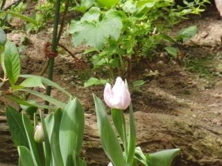 温室では薄ピンク色のチューリップがすでに咲いていました♪