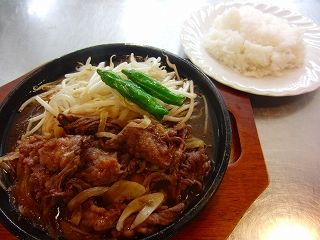 アツアツの鉄板にのったお肉と、もやし!ご飯がすすみますね。