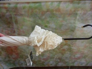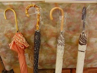 バラの温室に、バラグッズと一緒に可愛らしい日傘があるんです。