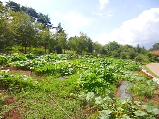 カボチャ畑で育てているカボチャと