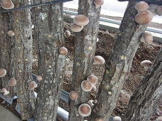 原木にしいたけ菌を打ちこんで発生させた、