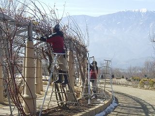 2013年01月31日 バラの剪定 公開済み: 2013年1月31日更新: 2013年1月31日作成者: ハイジの村カテゴリー: バラ, 日本一の回廊 今日はバラの回廊で剪定をしているスタッフの所へ 行ってきました。 6月のバラの時期に向けて、 日々作業が進められています。 剪定は、木の形・花つきを良くし、 風通しや日当たりを良くすることで、 害虫の発生を少なくするための作業です。 こんなに伸びていた枝が、 こんなにスッキリしました! 今年は、この写真の時よりも、 もっと綺麗に咲くこと間違いなしです! 6月が待ち遠しいな。 ようこ