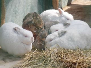ウサギたちは、みんなで体を寄せ合ってお昼寝をしていました。