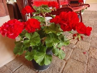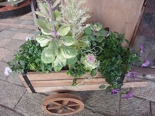 ゼラニウムやシクラメン、寄せ植えなど。