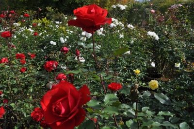 さらに足を進めて薔薇の回廊に入ると秋薔薇が咲き、