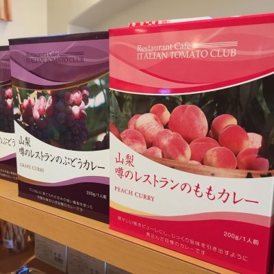山梨噂のレストランぶどうカレー、ももカレーを販売しています。