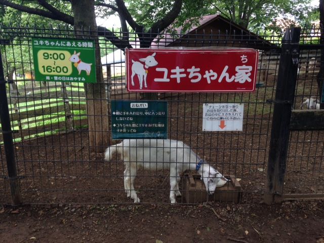 散策をするとヤギのユキちゃんに会います。隣の小屋にウサギさんもいます。