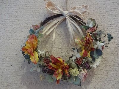 お好きな花材を選んで頂きリースを作るので全員違った作品が作れます。
