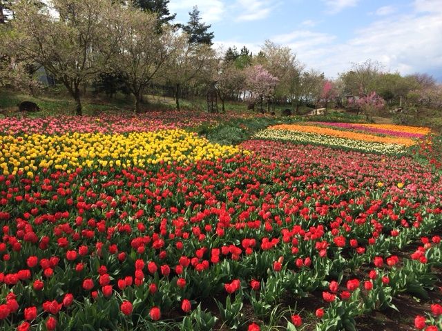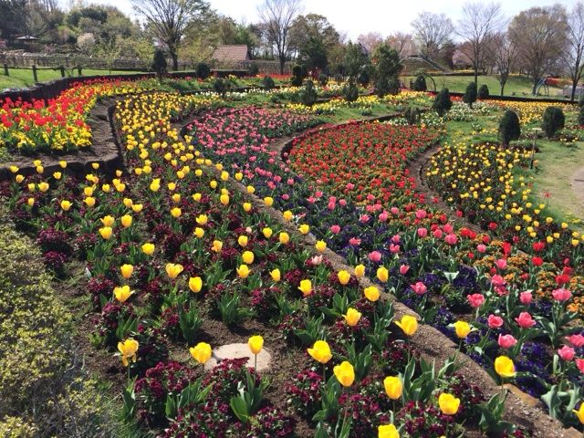 園内のパノラマ花壇を彩る30万球のチューリップが