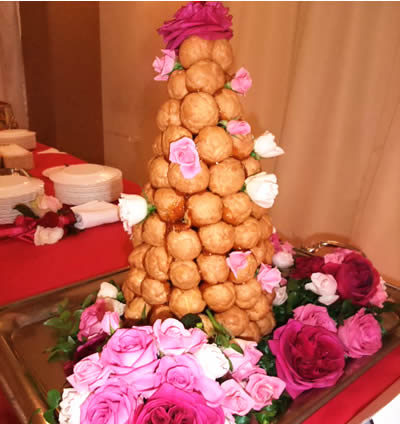 結婚式で実際に使われるのと同じ、ケーキやクロカンブッシュなど